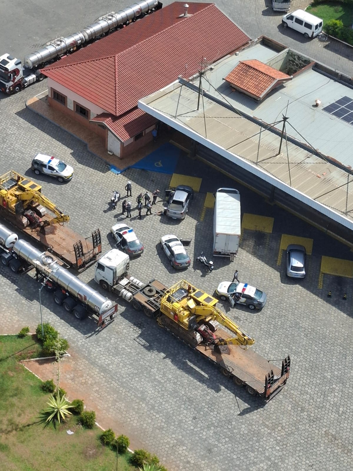 Após o alerta sobre o roubo de um Fiat/Toro e com o auxílio do helicóptero Águia da PM, o condutor do utilitário foi abordado no pátio de um posto de combustíveis no km 120 da estrada. No local, os policiais constataram que as placas do veículo estavam adulteradas.